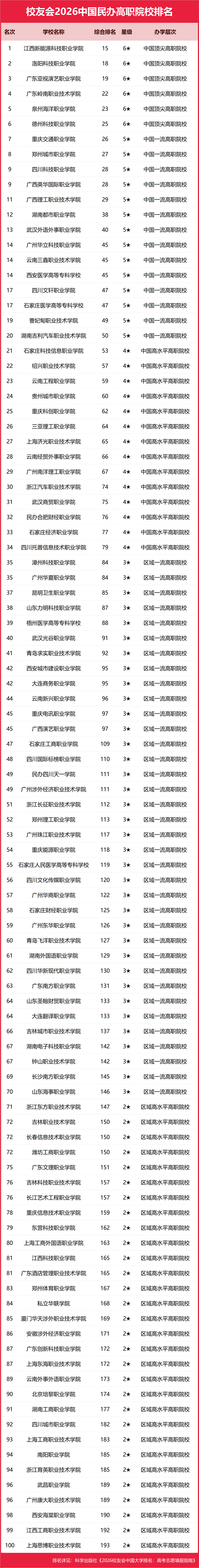 | 校友會(huì)2026中國(guó)民辦高職院校排名,江西新能源科技職業(yè)學(xué)院、洛陽(yáng)科技職業(yè)學(xué)院和廣東亞視演藝職業(yè)學(xué)院前三 |