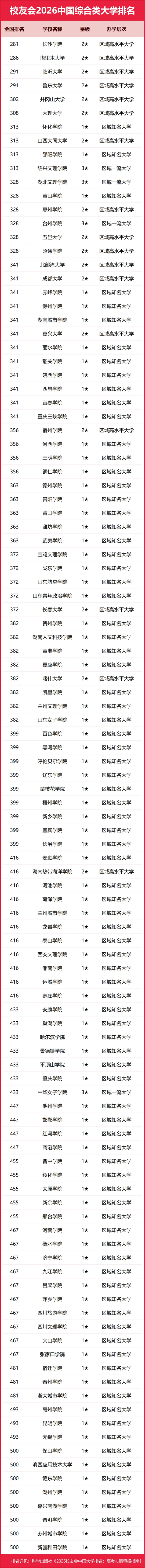 | 校友會(huì)2026中國(guó)綜合類大學(xué)排名,北京大學(xué)、三亞學(xué)院、廣州南方學(xué)院、深圳職業(yè)技術(shù)大學(xué)、合肥職業(yè)技術(shù)學(xué)院第一 |