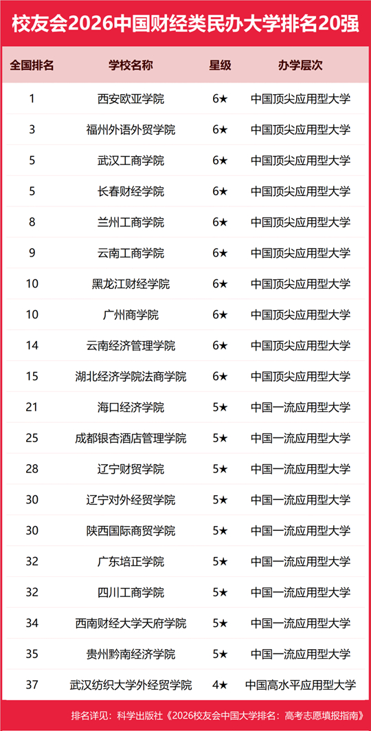 西安歐亞學(xué)院雄居2026中國財(cái)經(jīng)類民辦大學(xué)排名第一,武漢工商學(xué)院、長春財(cái)經(jīng)學(xué)院躋身前3強(qiáng)