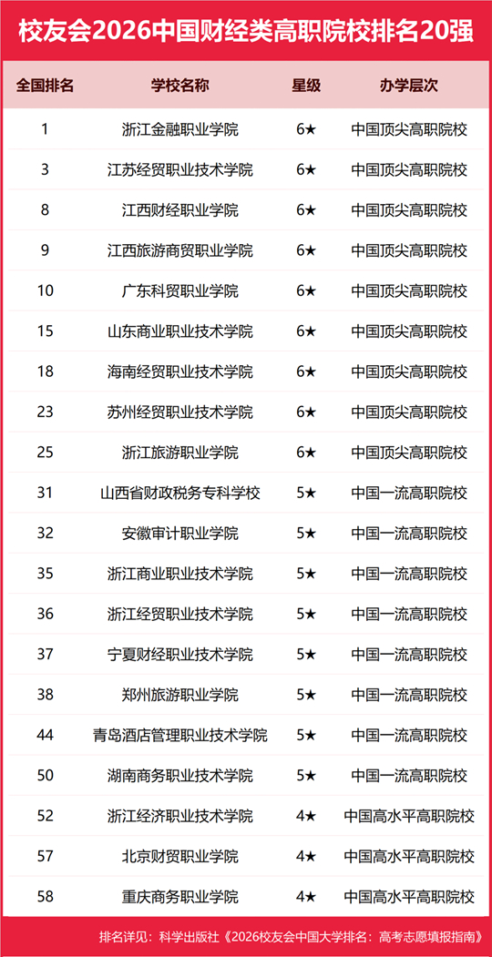 浙江金融職業(yè)學(xué)院雄居2026中國財(cái)經(jīng)類高職院校排名第一,山東商業(yè)職業(yè)技術(shù)學(xué)院躋身前10強(qiáng)