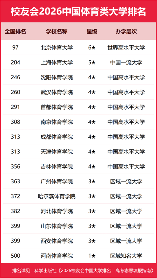 北京體育大學(xué)雄居2026中國體育類大學(xué)排名第一,沈陽體育學(xué)院、廣州體育學(xué)院挺進(jìn)前10強(qiáng)