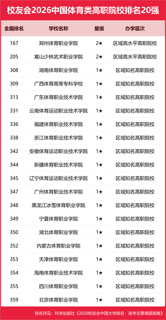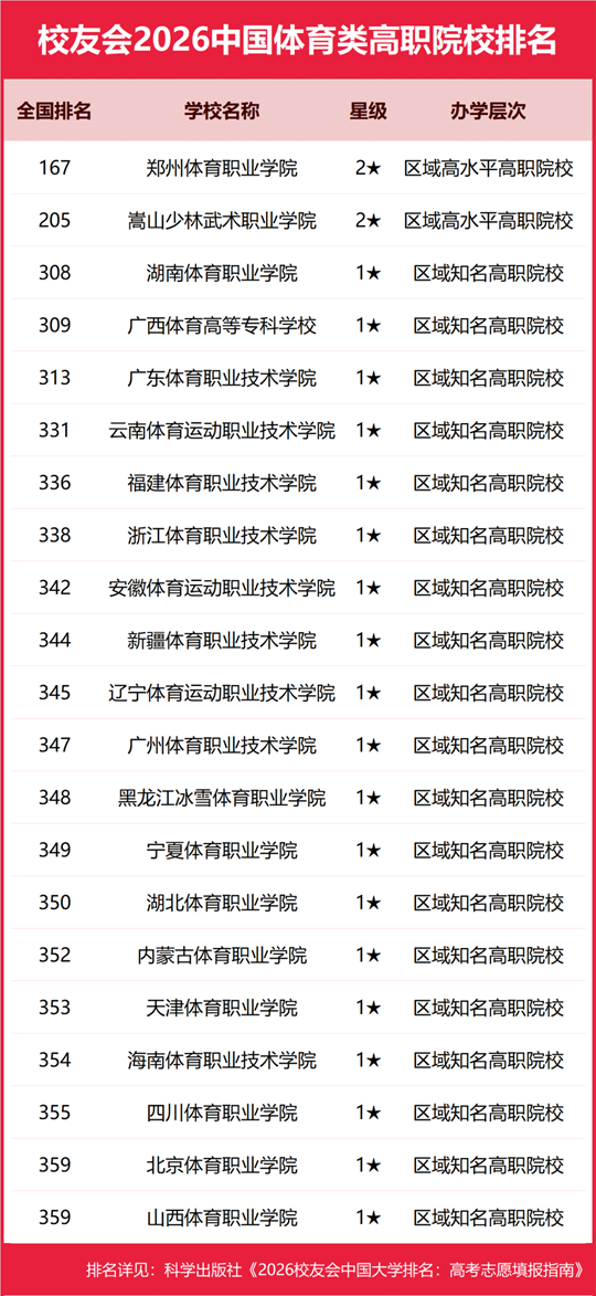 鄭州體育職業(yè)學(xué)院雄居2026中國體育類高職院校排名第一,湖南體育職業(yè)學(xué)院躋身前3強(qiáng)