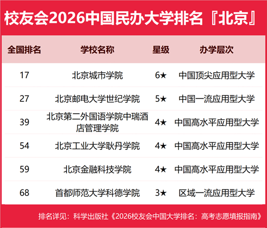 | 校友會(huì)2026北京市大學(xué)排名,北京大學(xué)、北京城市學(xué)院、北京科技職業(yè)大學(xué)、北京工業(yè)職業(yè)技術(shù)學(xué)院第一 |