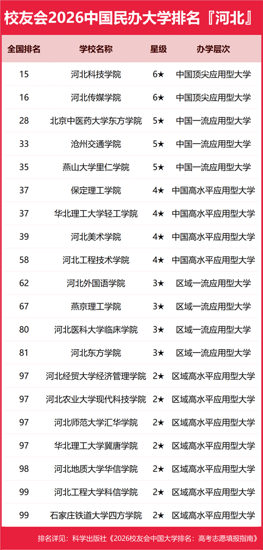 河北科技學(xué)院雄居2026河北省民辦大學(xué)排名第一,河北傳媒學(xué)院躋身前3強(qiáng)
