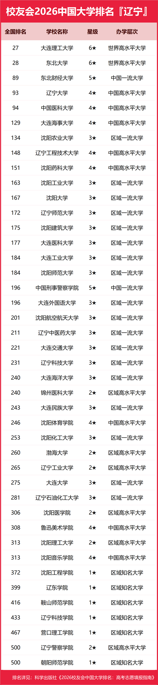 | 校友會(huì)2026遼寧省大學(xué)排名,大連理工大學(xué)、沈陽(yáng)城市學(xué)院、遼寧理工職業(yè)大學(xué)、遼寧醫(yī)藥職業(yè)學(xué)院第一 |