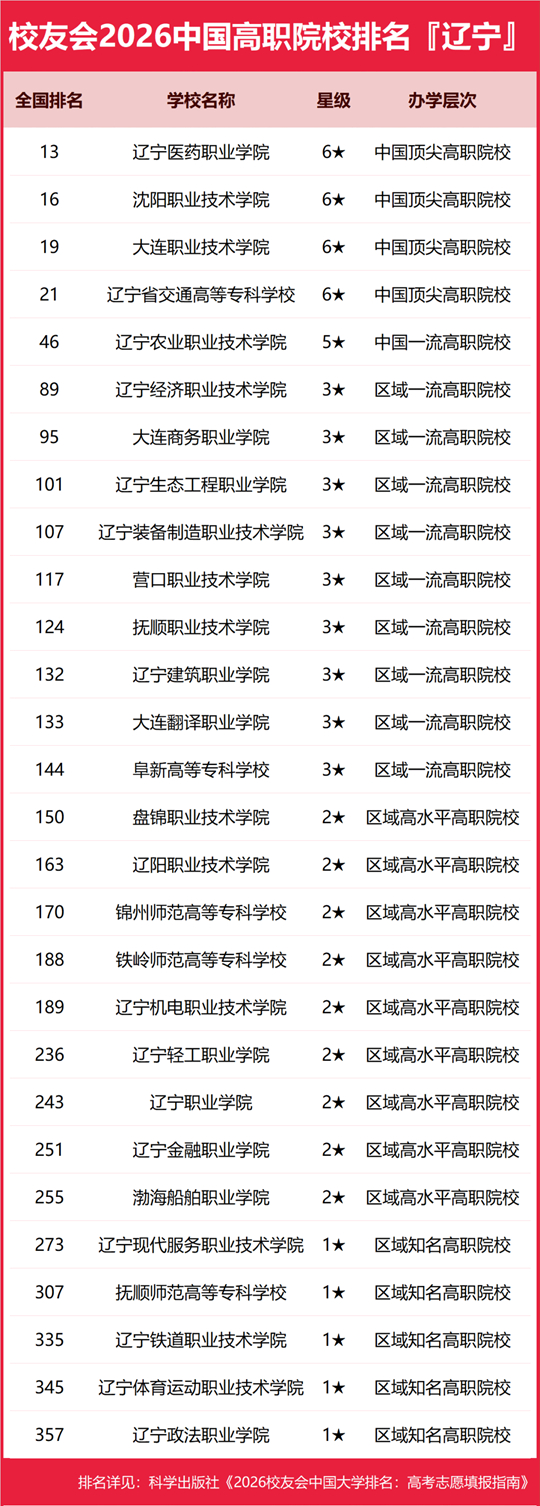 遼寧醫(yī)藥職業(yè)學(xué)院雄居2026遼寧省高職院校排名第一,沈陽(yáng)職業(yè)技術(shù)學(xué)院躋身前3強(qiáng)