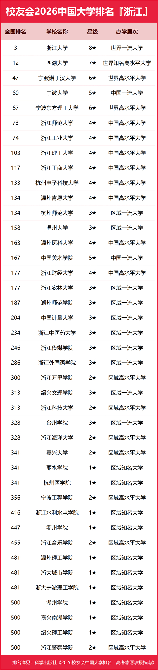 | 校友會(huì)2026浙江省大學(xué)排名,浙江大學(xué)、寧波大學(xué)科學(xué)技術(shù)學(xué)院、寧波職業(yè)技術(shù)大學(xué)、浙江金融職業(yè)學(xué)院第一 |