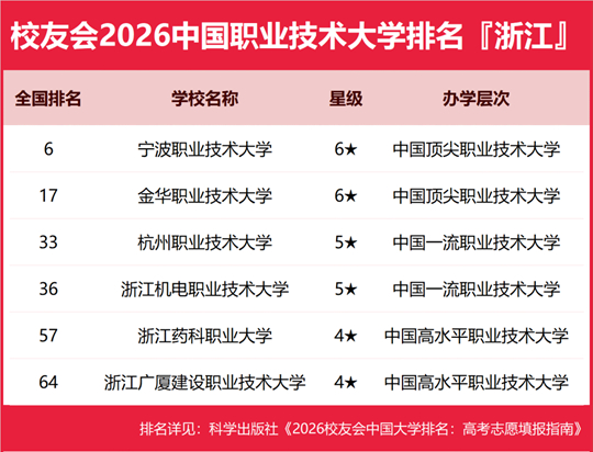 寧波職業(yè)技術(shù)大學(xué)雄居2026浙江省職業(yè)技術(shù)大學(xué)排名第一,金華職業(yè)技術(shù)大學(xué)躋身前3強(qiáng)