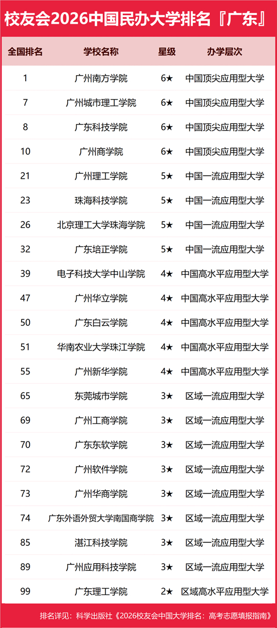 廣州南方學(xué)院雄居2026廣東省民辦大學(xué)排名第一,廣州商學(xué)院、廣州理工學(xué)院、珠?萍紝W(xué)院躋身前10強