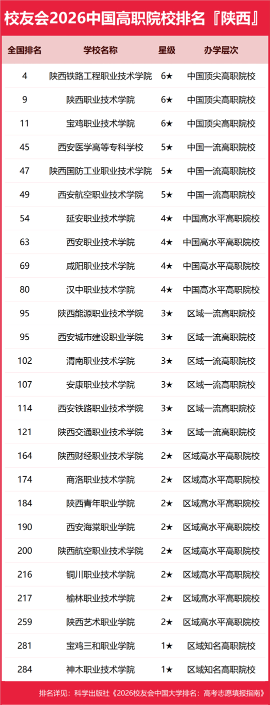 榜單顯示,西安交通大學(xué)問(wèn)鼎校友會(huì)2026陜西省大學(xué)排名首位,西安歐亞學(xué)院位列2026陜西省民辦大學(xué)排名第一,西安汽車(chē)職業(yè)大學(xué)位居2026陜西省職業(yè)技術(shù)大學(xué)排名榜首,陜西鐵路工程職業(yè)技術(shù)學(xué)院?jiǎn)柖?026陜西省高職院校排名冠軍。
