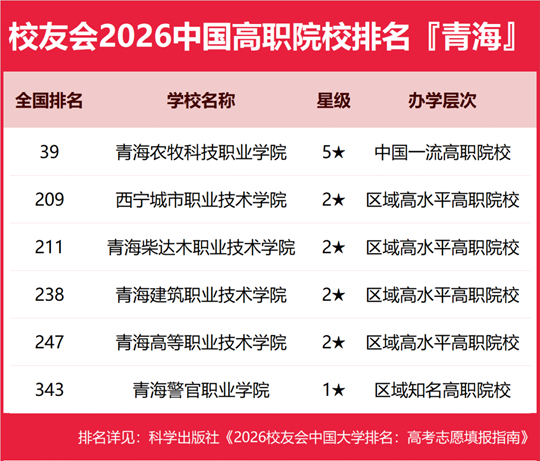 | 校友會2026青海省大學(xué)排名,青海大學(xué)、青海大學(xué)昆侖學(xué)院、青海職業(yè)技術(shù)大學(xué)、青海農(nóng)牧科技職業(yè)學(xué)院第一 |