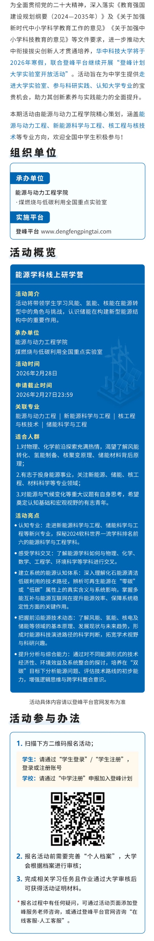 華中科技大學(xué)2026年寒假登峰計劃大學(xué)實驗室開放活動的報名通知