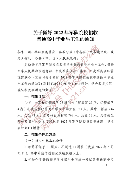 | 湖北:關于做好2022年軍隊院校招收普通高中畢業(yè)生工作的通知 |
