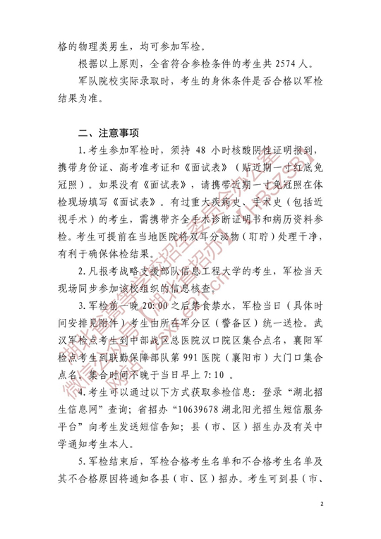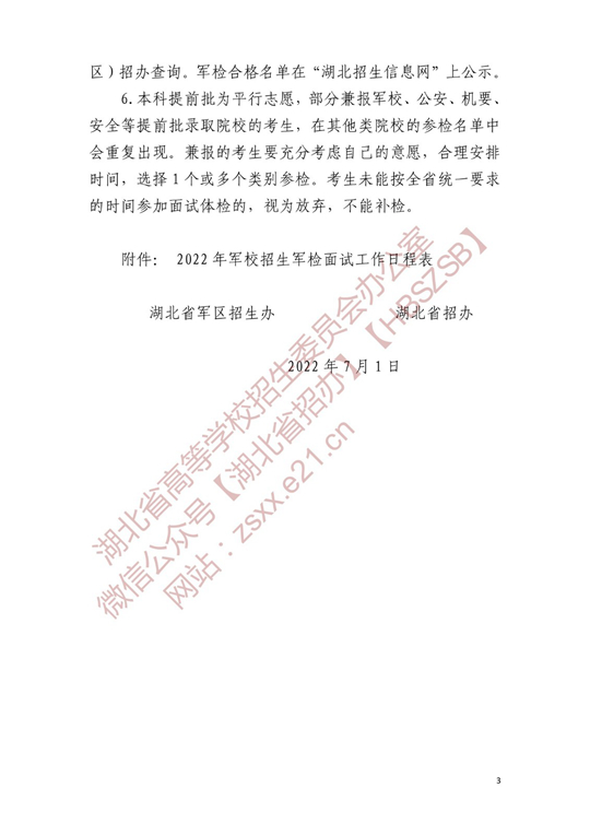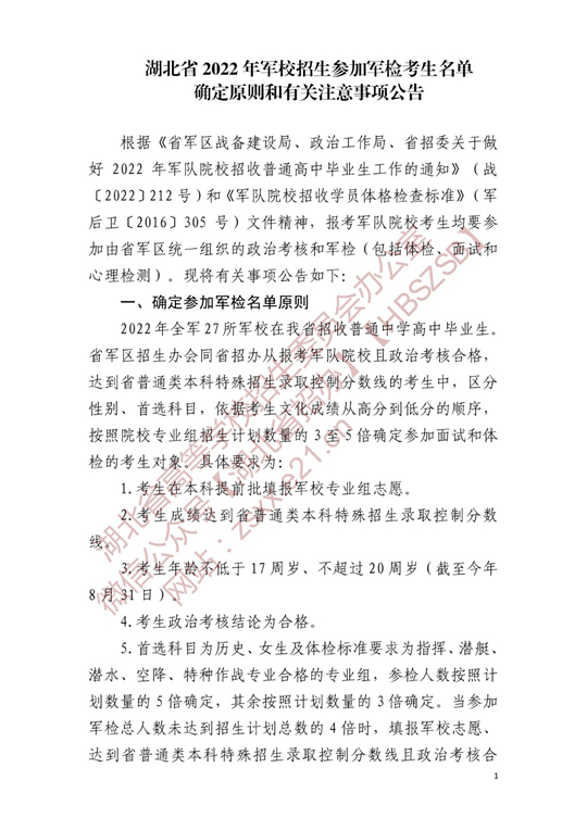 湖北省2022年軍校招生參加軍檢考生名單確定原則和有關(guān)注意事項公告
