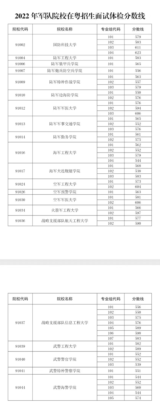 1.2022年軍隊(duì)院校在粵招生面試體檢分?jǐn)?shù)線