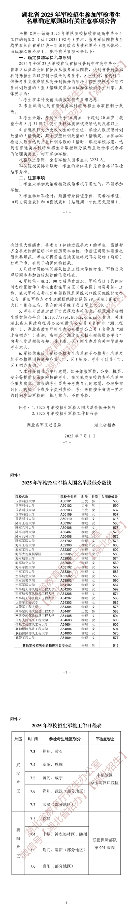 湖北省2025年軍校招生參加軍檢考生名單確定原則和有關(guān)注意事項公告