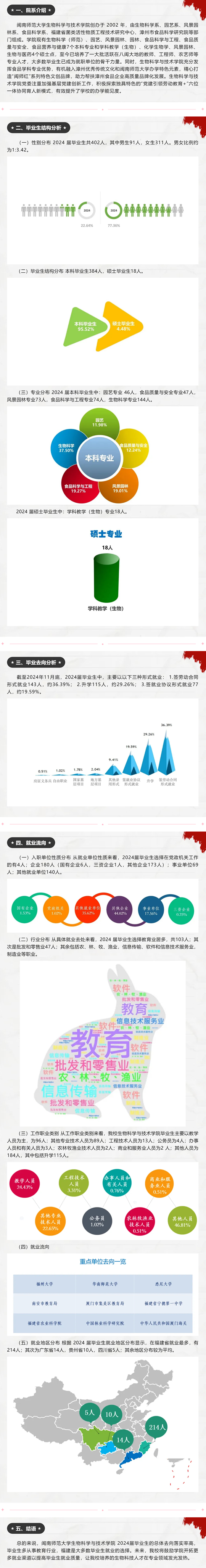 | 閩南師范大學生物科學與技術學院 2024屆畢業(yè)生就業(yè)質量分析報告 |