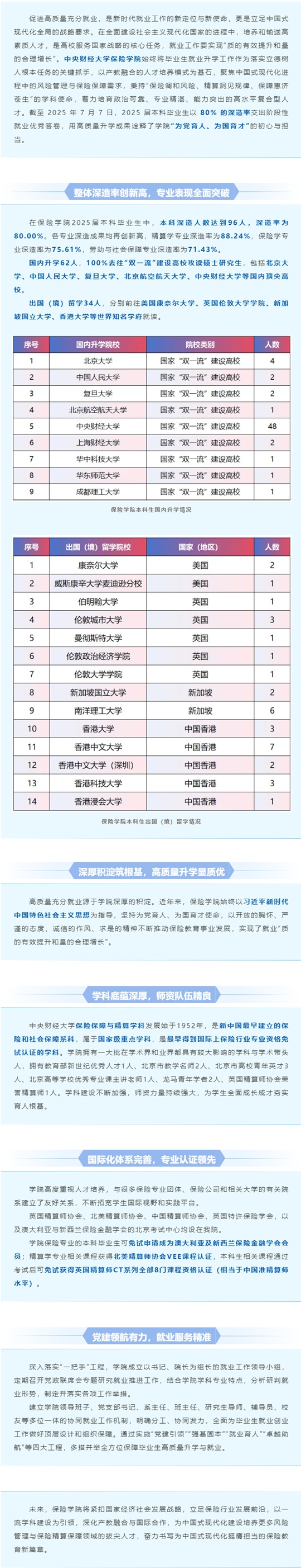 中央財(cái)經(jīng)大學(xué):保險(xiǎn)學(xué)院2025屆學(xué)子深造率80%!