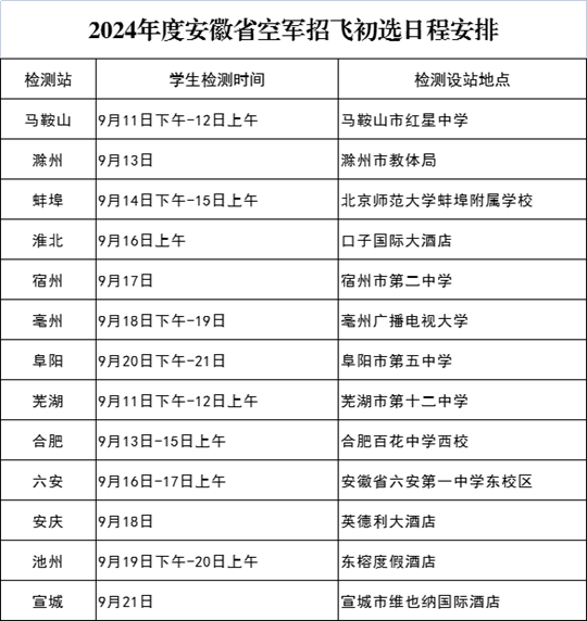 | 2024年度安徽省空軍招飛初選日程安排 |