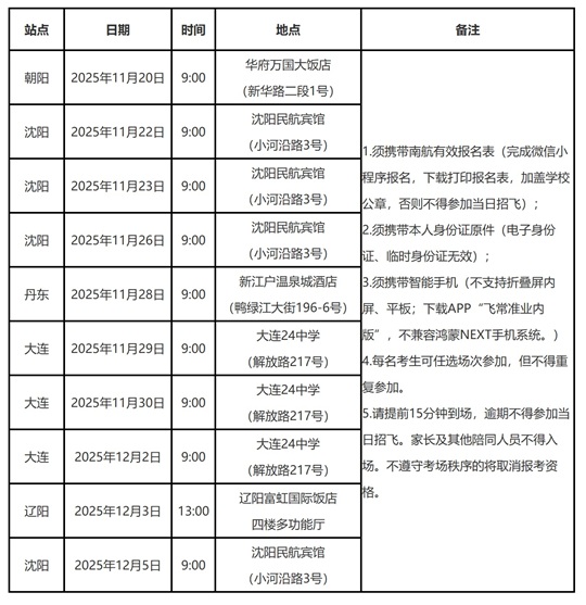 注:1.整體選拔安排說明:招飛相關(guān)環(huán)節(jié)安排綜合測試,包括但不限于飛行職業(yè)能力傾向測試、英語測試、綜合面試等考核,通過人員方可進(jìn)入后續(xù)環(huán)節(jié),具體安排以當(dāng)?shù)啬虾秸酗w辦通知為準(zhǔn)。