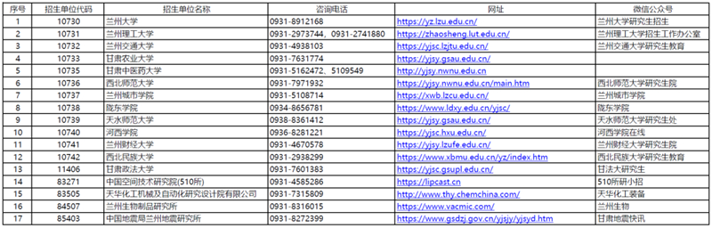 | 甘肅省2026年全國碩士研究生招生考試各招生單位和報考點聯(lián)系方式 |