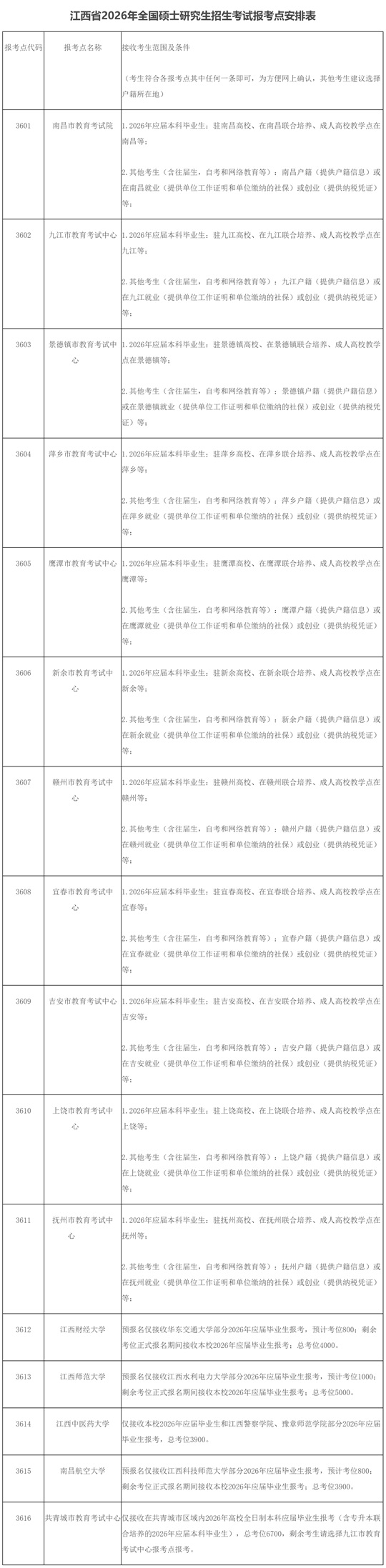| 江西省2026年全國碩士研究生招生考試報名公告 |