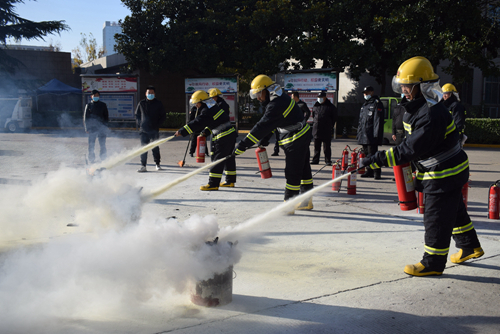 為進(jìn)一步增強(qiáng)教職工的消防安全意識(shí),提高應(yīng)急自救能力,有效地預(yù)防和杜絕火災(zāi)事故的發(fā)生。在第30個(gè)全國(guó)“119”消防宣傳月活動(dòng)來臨之際,11月10日上午,陜西國(guó)際商貿(mào)學(xué)院組織開展冬季消防安全知識(shí)培訓(xùn)及滅火實(shí)戰(zhàn)演練活動(dòng)。公寓管理員、餐飲操作員、保安隊(duì)員、微型消防站站員等近百人參加培訓(xùn)和演練。常務(wù)副校長(zhǎng)、黨委副書記、紀(jì)委書記賈明遠(yuǎn)、副校長(zhǎng)李吉友、相關(guān)部門負(fù)責(zé)人出席活動(dòng)。