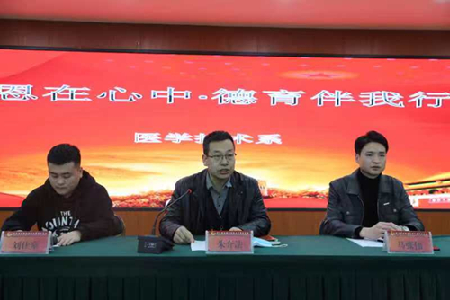 為提高學生道德素質、倡導同學們培育與踐行社會主義核心價值觀、從而進一步促進學生全面發(fā)展,為提高學子思想道德修養(yǎng),日常行為規(guī)范,弘揚法學院文明、優(yōu)秀的院風,學風。為落實西安海棠職業(yè)學院有關“省級‘平安校園’迎評復審”重點工作安排,推進感恩勵志教育,積極營造和諧校園氛圍。西安海棠職業(yè)學院醫(yī)學技術系于11月23日晚在學術報告廳舉辦主題為“感恩在心中,德育伴我行”主題講座。出席本次會議的有西安海棠職業(yè)學院醫(yī)學技術系主任朱介法,醫(yī)學技術系科長馬張偉,醫(yī)學技術系團總支書記劉佳豪,21級、22級輔導員,以及團學組織的學生干部和模范管理干部。