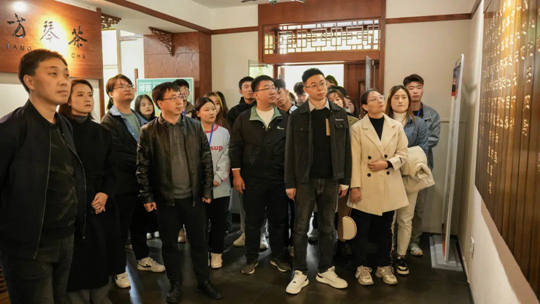 參觀中,兩院同學(xué)們也相互友好交流,分享了工作中的經(jīng)驗(yàn)、新媒體運(yùn)營中不同問題的看法與解決思路。