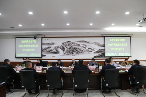 西安海棠職業(yè)學(xué)院院長馮居秦就學(xué)院2022年度年檢自查自評情況,圍繞黨建與思想政治、辦學(xué)條件、法人治理、辦學(xué)行為、財務(wù)管理等9個方面向年檢專家組進(jìn)行了詳細(xì)匯報。