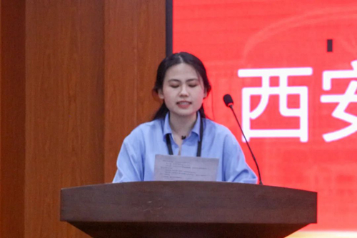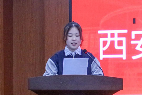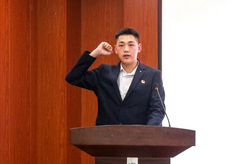 宣布完畢后,西安海棠職業(yè)學(xué)院學(xué)生代表蔣旺霖帶領(lǐng)全場(chǎng)師生莊嚴(yán)宣讀誓詞,使每一位在場(chǎng)老師同學(xué)精神振奮。