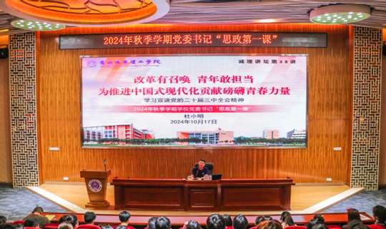 10月17日晚,廣州城市理工學(xué)院黨委書記杜小明在行政樓703會(huì)議室,以“改革有召喚青年敢擔(dān)當(dāng)為推進(jìn)中國(guó)式現(xiàn)代化貢獻(xiàn)磅礴青春力量”為題,為2024級(jí)班團(tuán)干部講授思政課,這也是廣州城市理工學(xué)院誠(chéng)理講壇第38講。