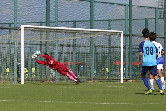 廣州城市理工學(xué)院守門員完成精彩撲救(鄒小駒攝)
