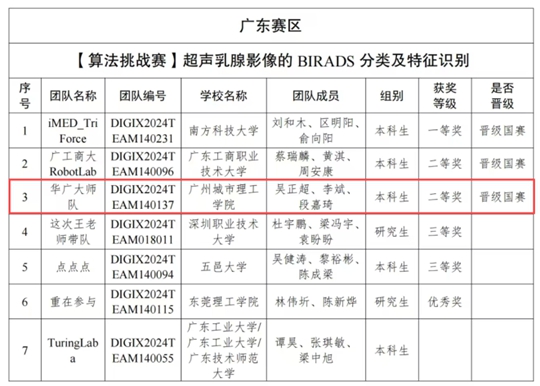 超聲乳腺影像的BIRADS分類及特征識別賽題組獲省二等獎(劉穎君提供)
