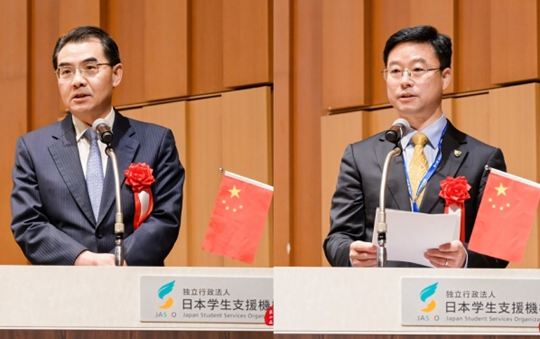 中華人民共和國駐日本國特命全權(quán)大使吳江浩、中國教育國際交流協(xié)會(huì)副會(huì)長、秘書長楊軍致辭(主辦方提供)