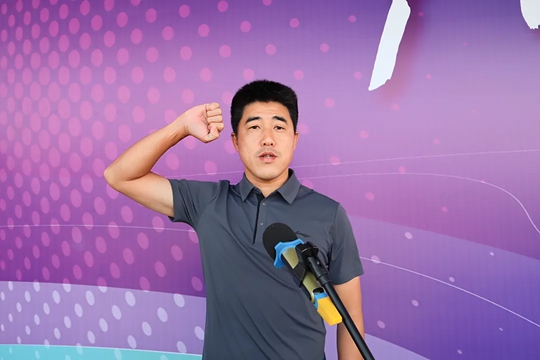 裁判員代表鄒小駒代表全體裁判員和工作人員宣誓。他表示在比賽過程中,會嚴肅認真,公正裁決,秉公執(zhí)法,嚴格遵守比賽規(guī)程,尊重運動員,尊重客觀事實,以良好的道德風尚和專業(yè)的裁判素質(zhì)確保比賽順利進行。