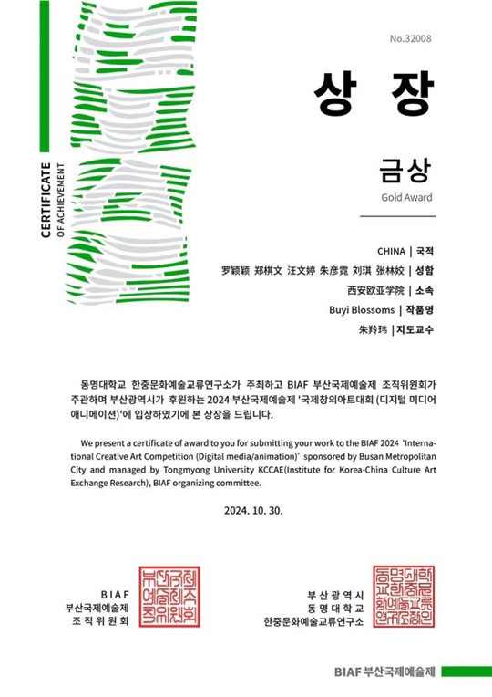| 2金1銀2銅!BIAF2024釜山國際藝術(shù)節(jié)西安歐亞學(xué)院師生喜獲佳績! |