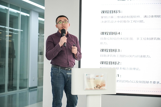 。▓D二) 開幕式現(xiàn)場,人居環(huán)境學院副院長殷穎迪介紹項目概況