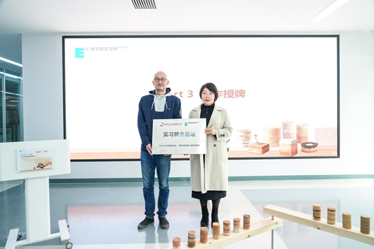 以項目為依托,西安歐亞學院職業(yè)發(fā)展與企業(yè)合作部部長王麗霞代表學校向土上工作室授牌,共建實習就業(yè)基地,賦能學生發(fā)展。