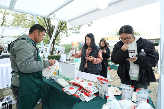 這次市集上,8家從事生態(tài)有機(jī)農(nóng)業(yè)的農(nóng)戶和農(nóng)場為校園帶來了綠色的田園氣息,新鮮、本地、有機(jī)是他們的主打關(guān)鍵詞。小金黃老玉米制作的爆米花香甜脆口;使用傳統(tǒng)方式種植、沒有任何添加劑的獼猴桃風(fēng)味濃郁酸甜;秦嶺里古法養(yǎng)蜂采集的土蜂蜜味道純正,“取一半留一半”的做法很好地保護(hù)了蜜源和秦嶺原有生態(tài);你還可以坐下來和農(nóng)夫們喝喝茶,嘗嘗各種有機(jī)餅干、酥餅,聊聊他們眼中食物與自然的關(guān)系……