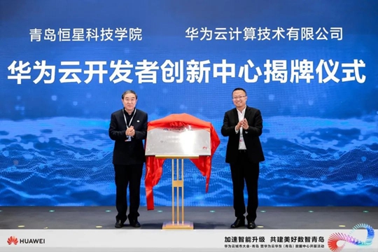 青島恒星科技學(xué)院黨委書記劉龍海與華為云中國區(qū)副總裁、華為云生態(tài)發(fā)展與運(yùn)營部部長陶志強(qiáng),在青島市及華為云等相關(guān)領(lǐng)導(dǎo)的見證下,共同為華為云開發(fā)者創(chuàng)新中心揭牌。