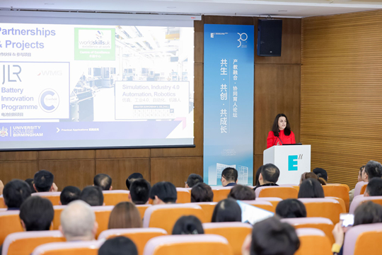 英國(guó)伯明翰大學(xué)學(xué)院工程、數(shù)字與可持續(xù)建筑學(xué)院執(zhí)行院長(zhǎng)Rosa Wells教授率先分享了英國(guó)高校的實(shí)踐經(jīng)驗(yàn)。她強(qiáng)調(diào),該校以“產(chǎn)業(yè)需求驅(qū)動(dòng)課程設(shè)計(jì)”為核心原則,通過(guò)組建產(chǎn)業(yè)合作委員會(huì)、參與政府資助的技能缺口調(diào)研項(xiàng)目,確保課程內(nèi)容與技術(shù)發(fā)展同步!拔覀兇蛟炝斯I(yè)4.0學(xué)習(xí)工廠、電池制造技能培訓(xùn)等特色實(shí)踐平臺(tái),讓學(xué)生在跨專業(yè)協(xié)作與模擬職場(chǎng)場(chǎng)景中提升實(shí)操能力!盬ells特別提到,學(xué)校通過(guò)“雙向指導(dǎo)”模式,既推動(dòng)博士生協(xié)助教師掌握前沿技術(shù),也促進(jìn)教師在學(xué)術(shù)上支持博士生成長(zhǎng),實(shí)現(xiàn)教學(xué)相長(zhǎng)。