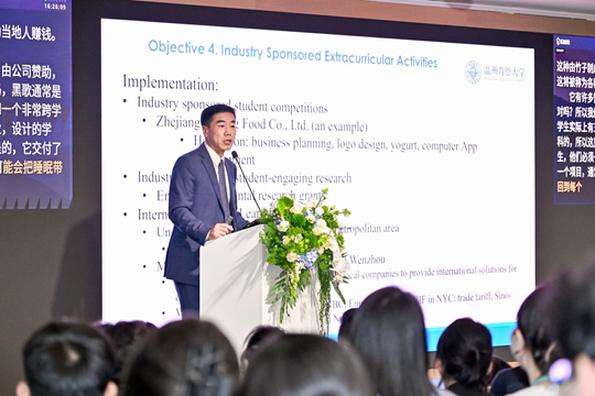 溫州肯恩大學(xué)學(xué)術(shù)事務(wù)副校長(zhǎng)楊毅欣教授結(jié)合中美合作辦學(xué)經(jīng)驗(yàn),闡述了產(chǎn)學(xué)研深度融合的育人路徑。他介紹,溫肯每年組織30至40次企業(yè)走訪,與Apple、華大基因等48家知名企業(yè)建立了合作關(guān)系,將真實(shí)產(chǎn)業(yè)項(xiàng)目融入課堂教學(xué)!拔覀冮_(kāi)設(shè)了跨學(xué)科的‘人類壓力測(cè)試與評(píng)估’課程,舉辦24小時(shí)企業(yè)贊助的黑客松競(jìng)賽,讓學(xué)生在解決實(shí)際問(wèn)題中培養(yǎng)創(chuàng)新能力!睏钜阈缽(qiáng)調(diào),通識(shí)教育是培養(yǎng)學(xué)生批判性思維的關(guān)鍵,溫肯設(shè)置的45學(xué)分通識(shí)課程占總學(xué)分三分之一,并實(shí)現(xiàn)AI通識(shí)課程全覆蓋,以助力學(xué)生適應(yīng)智能時(shí)代的發(fā)展需求。