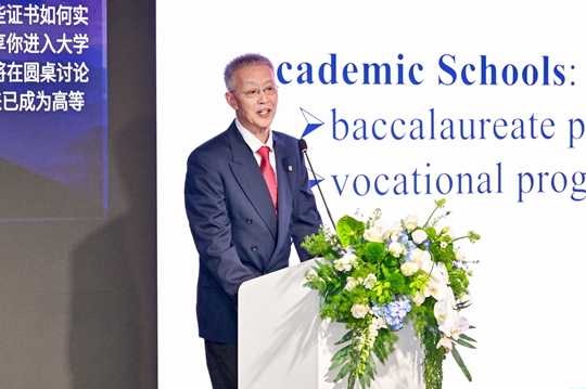 10月18日下午在圖書館報(bào)告廳舉行的共生·共創(chuàng)·共成長(zhǎng)——產(chǎn)教融合、協(xié)同育人論壇,邀請(qǐng)了英國(guó)伯明翰大學(xué)學(xué)院副校長(zhǎng),工程、數(shù)字化與可持續(xù)建筑領(lǐng)域執(zhí)行院長(zhǎng)Rosa Wells,北京大學(xué)教育學(xué)院院長(zhǎng)閻鳳橋,北京大學(xué)中國(guó)教育財(cái)政科學(xué)研究所所長(zhǎng)王蓉,蘭州大學(xué)高等教育研究院院長(zhǎng)盧彩晨,中國(guó)新高教集團(tuán)董事長(zhǎng)李孝軒,廈門南洋職業(yè)學(xué)院創(chuàng)辦人、校長(zhǎng)魯加升,重慶移通學(xué)院黨委書記何先剛,安徽三聯(lián)學(xué)院董事長(zhǎng)余皖生,云南翰文教育集團(tuán)副董事長(zhǎng)楊鑫,黃河科技學(xué)院黨委副書記趙會(huì)利,溫州肯恩大學(xué)副校長(zhǎng)楊毅欣等50余所高校代表;華為公共事業(yè)軍團(tuán)副總裁孫鵬飛,奇安信校企合作副總監(jiān)閆軍霞,復(fù)星旅文人力資源總監(jiān)黃佳,西部電影集團(tuán)總經(jīng)理助理、西影文旅公司董事長(zhǎng)閆禹,西安沉浸奇觀科技有限公司總經(jīng)理馮博等100余家企業(yè)代表;西安市遠(yuǎn)東一中、西安東儀中學(xué)、西安市錦園中學(xué)、咸陽(yáng)市育才中學(xué)、陜科大強(qiáng)化中學(xué)、咸陽(yáng)中學(xué)、寶雞市渭濱中學(xué)等30余所高中代表等累計(jì)200余人參加。西安歐亞學(xué)院董事長(zhǎng)胡建波,黨委書記趙國(guó)華,副校長(zhǎng)張樂(lè)芳、王艷出席。論壇由西安歐亞學(xué)院副校長(zhǎng)李正主持。