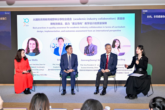 10月18日下午在春山里國(guó)際中心木禮堂舉行的“企業(yè)導(dǎo)向與人才培養(yǎng)——高等教育國(guó)際化視野中的質(zhì)量保障”論壇,由教學(xué)質(zhì)量評(píng)估中心、國(guó)際合作與交流中心、國(guó)際語(yǔ)言中心聯(lián)合舉辦,來(lái)自英國(guó)伯明翰大學(xué)學(xué)院、溫州肯恩大學(xué)及西安歐亞學(xué)院的多位教育專家圍繞中外高等教育實(shí)踐,通過(guò)理念碰撞與經(jīng)驗(yàn)共享,深入探討了產(chǎn)學(xué)研協(xié)同育人的新模式,為構(gòu)建更加就業(yè)導(dǎo)向、質(zhì)量可信的高等教育體系提供了有益參考與可行路徑,令與會(huì)師生深受啟發(fā)。