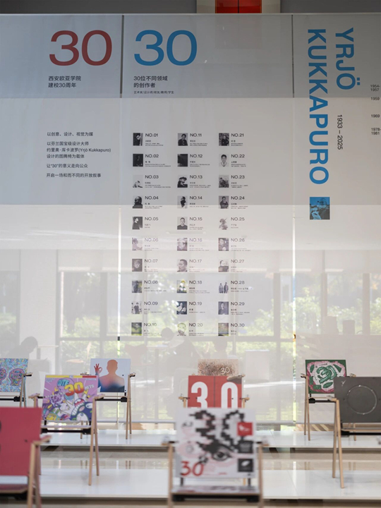 本次展覽以芬蘭國寶級(jí)設(shè)計(jì)師約里奧•庫卡波羅(Yrjo Kukkapuro)設(shè)計(jì)的圖騰椅為載體,30位創(chuàng)作者賦予30把椅子多樣的藝術(shù)語言,將數(shù)字“30”背后所蘊(yùn)含的精神、寓意、活力與面貌拆解、重構(gòu),共同迸發(fā)出西安歐亞學(xué)院建校三十周年的創(chuàng)意圖景。