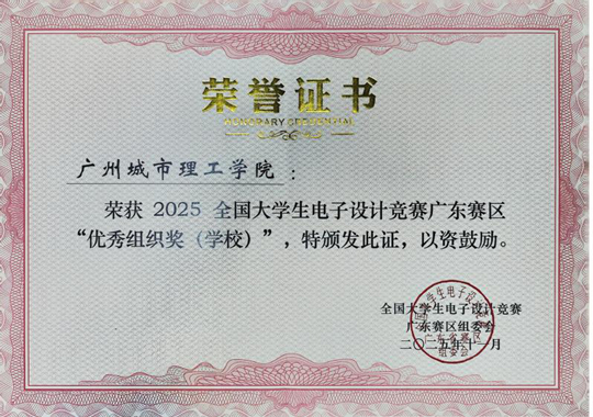 | 廣州城市理工學(xué)院榮獲全國大學(xué)生電子設(shè)計競賽廣東賽區(qū)優(yōu)秀組織獎 |