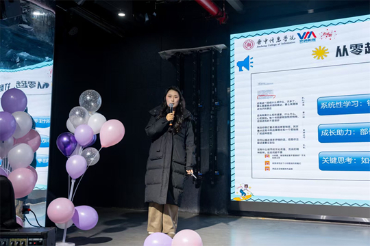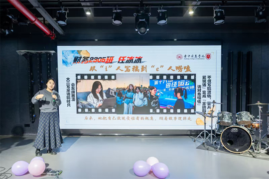 淬煉商學(xué)院·國(guó)際商學(xué)院張冰璐老師首先上臺(tái)分享。她以《以熱愛為炬,與校媒共成長(zhǎng)》為主題,分享了學(xué)院宣傳團(tuán)隊(duì)任冰冰,陳瑞濤,田正大三位同學(xué)的蛻變故事,鼓勵(lì)大家在實(shí)踐中成長(zhǎng),在錘煉中賦能,更在團(tuán)隊(duì)中找到自我的價(jià)值。她鼓勵(lì)所有校媒人將熱愛化為持續(xù)的動(dòng)力,并真摯寄語:“如果有熱愛,努力鍛煉本領(lǐng);如果有擅長(zhǎng),盡量樂在其中”,點(diǎn)燃了在場(chǎng)每一位校媒人的初心。
