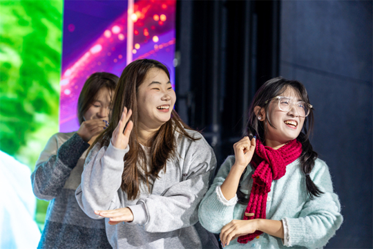 本次頒獎(jiǎng)典禮巧妙融入豐富多元的互動(dòng)體驗(yàn),F(xiàn)場(chǎng)特設(shè)拍照墻及多個(gè)互動(dòng)打卡游戲攤位,吸引了師生廣泛參與。大家在“趣味影視臺(tái)詞”中機(jī)智應(yīng)答,在“共享大腦”趣味游戲中捕捉美好,在輕松愉悅的交流中拉近距離,笑聲與掌聲不斷,氣氛格外熱烈。