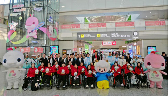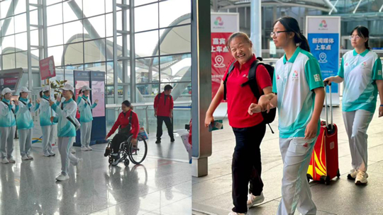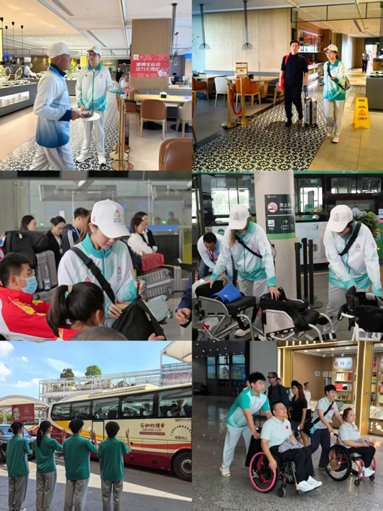 “小海豚”志愿者遵循“平等、尊重、適度、暖心、精準(zhǔn)、高效”原則,以伙伴、朋友的身份提供服務(wù),注重殘障人士的自主性與獨(dú)立性,營(yíng)造暖心服務(wù)氛圍。在白云機(jī)場(chǎng)T1、T2、T3航站樓接機(jī)口,“小海豚”志愿者會(huì)提前核對(duì)殘障運(yùn)動(dòng)員的航班信息,推著可折疊的無(wú)障礙行李車等候,為坐輪椅的運(yùn)動(dòng)員搬運(yùn)行李并平穩(wěn)護(hù)送其通過特殊通道;遇到視力障礙的運(yùn)動(dòng)員,志愿者會(huì)輕握對(duì)方的手腕引導(dǎo)其避開人群,還會(huì)提前告知前方路況。從最初志愿者問運(yùn)動(dòng)員“您好,需要幫忙嗎?”到運(yùn)動(dòng)員遇到問題主動(dòng)問“志愿者,我的同伴需要去T1,能帶他去T1嗎?”這不僅僅是對(duì)志愿者服務(wù)的認(rèn)可,更是一份信任。